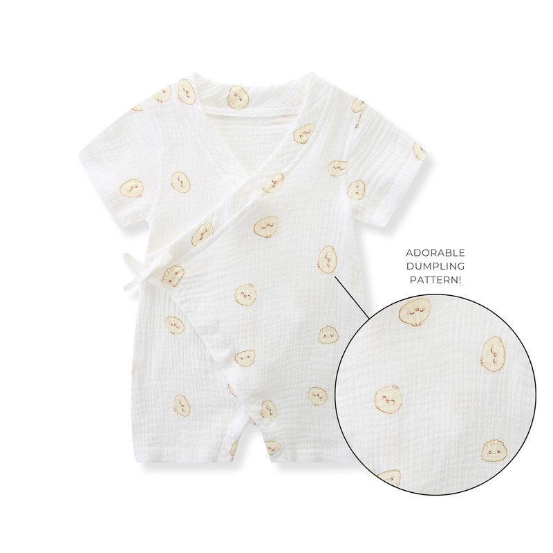 Koreanmade Baby Kimono Robe Romper with Traditional Korean Design Prints 100% Cotton (Dumplings, 3-6 months)