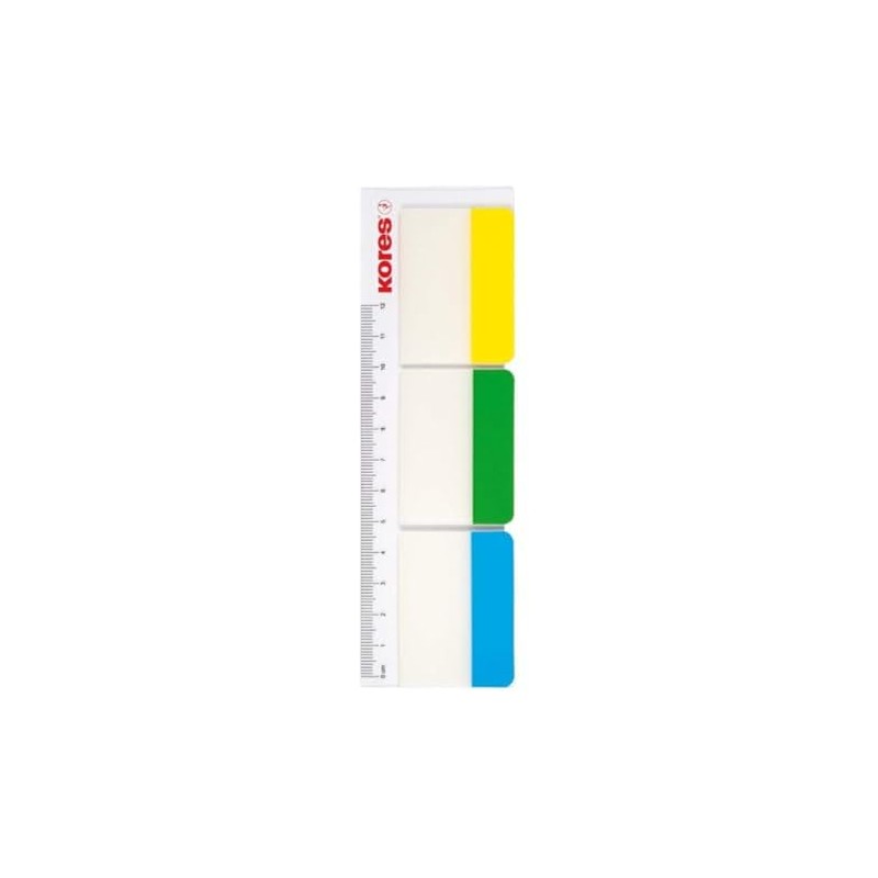Kores - Breite Register-HaftIndexstreifen auf Lineal, Selbstklebende Seitenmarkierer und Dokumentkennzeichnung, Schul- und Bürobedarf, 37 x 50 mm, Set aus 3 Sortierten Farben zu je 10 Blättern