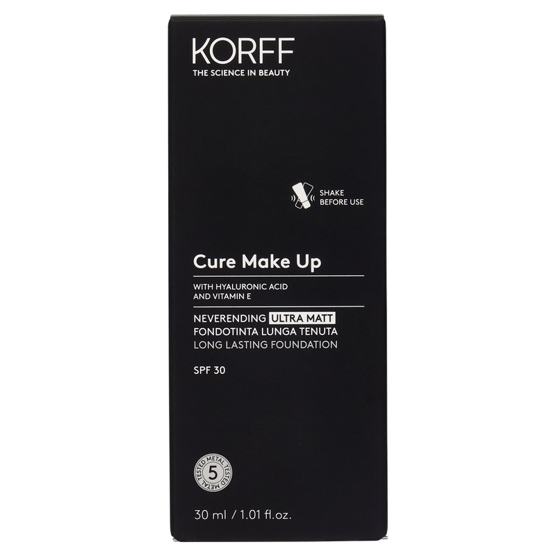 Korff Neverending Ultra Matt Foundation, Long Lasting Hold Up to 8 Hours, Matte Effect with Hyaluronic Acid, Vitamin E, Amande, SPF30, 30 ml