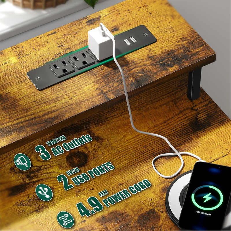 Korfile 47 Inch Computer Desk with Monitor Stand and Shelf, Rustic Brown