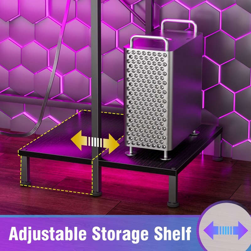 - Cool & Smart LED Lights: The gaming table with built-in RGB LED light strips to adjust the atmosphere for a better gaming experience. The white desk with storage provides 20 adjustable colors, 22 dynamic modes, 5 adjustable brightness levels, and 10 flicker frequencies that meet your different work or game scenarios