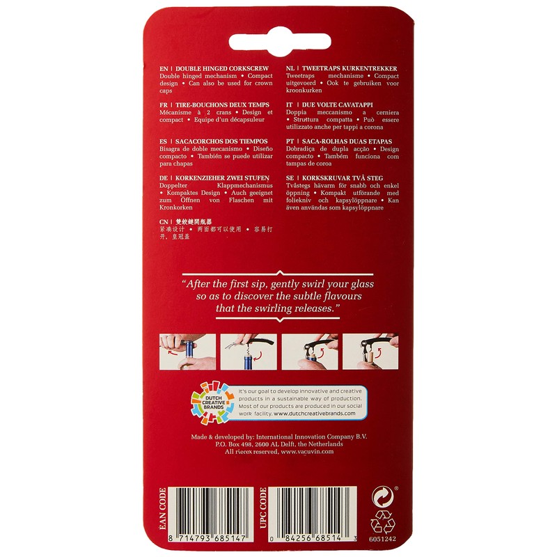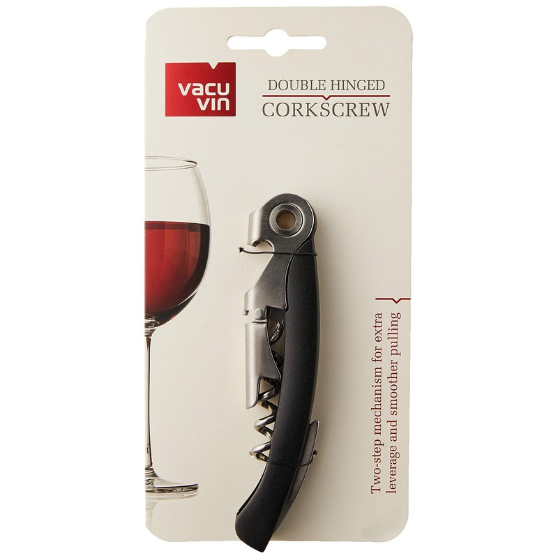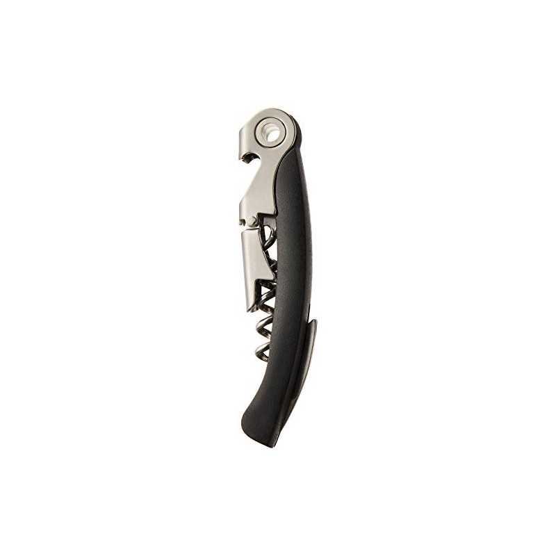 Stainless steel/plastic. With foil cutter. Uses its swivel mechanism for quick and effortless opening of a bottle. Black/stainless steel