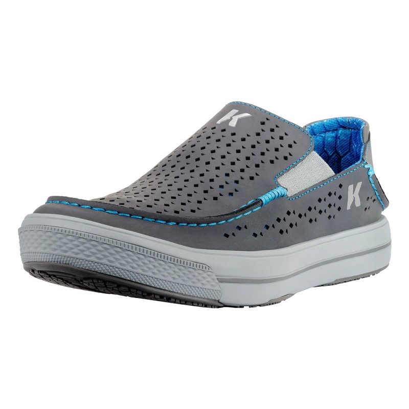 Korkers Men's Leather Fish Moc Vented Tarpon w/Fixed Kling-On Deck Soles, Charcoal, Size 09