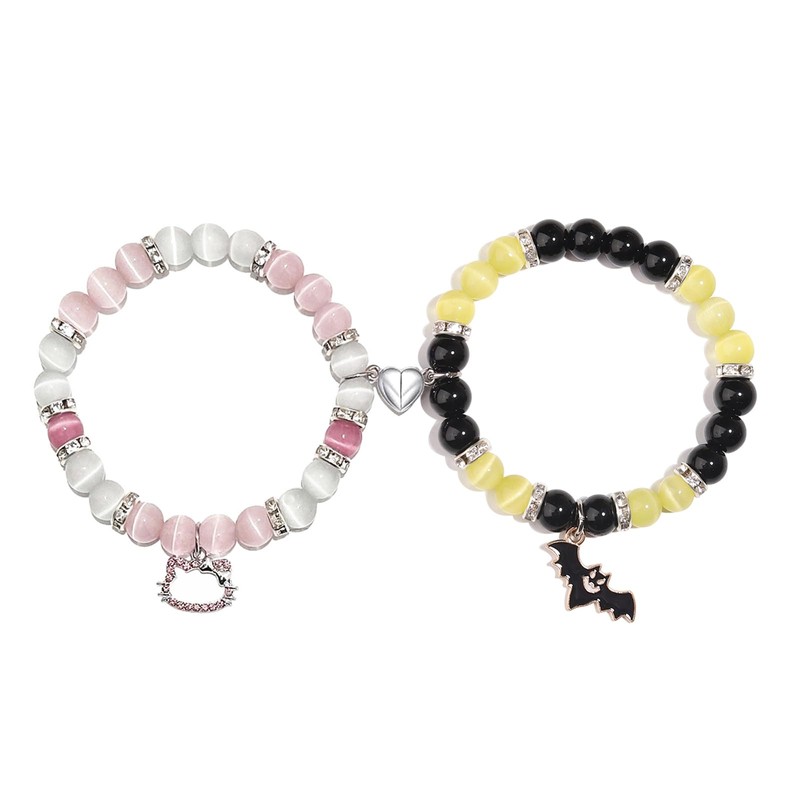 - KITTY AND BAT BRACELETS: Inspired by the features of Kitty and Bat, we designed this matching Kitty-Bat heart bracelet for couples and friends. When two bracelets come together, they attract each other. This bracelets can make separated friends or couples feel connected, no matter how far apart you are, this pair of long distance bracelets will make you feel together. The meaningful spider themed design, definitely a great gifts for her/him.