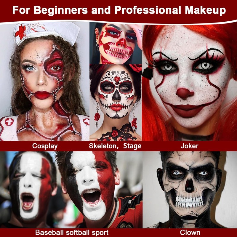 - VIELFÄLTIGE ANWENDUNGSMÖGLICHKEITEN: Ganz gleich, ob Sie einen einzigartigen Make-up-Look kreieren, Körperbemalungen durchführen, sich auf eine Weihnachtsfeier vorbereiten, eine Theateraufführung verschönern oder ein Film-Make-up-Tool verwenden möchten, diese Farbe hat mehrere Verwendungsmöglichkeiten, um Ihre künstlerische Vision zum Leben zu erwecken