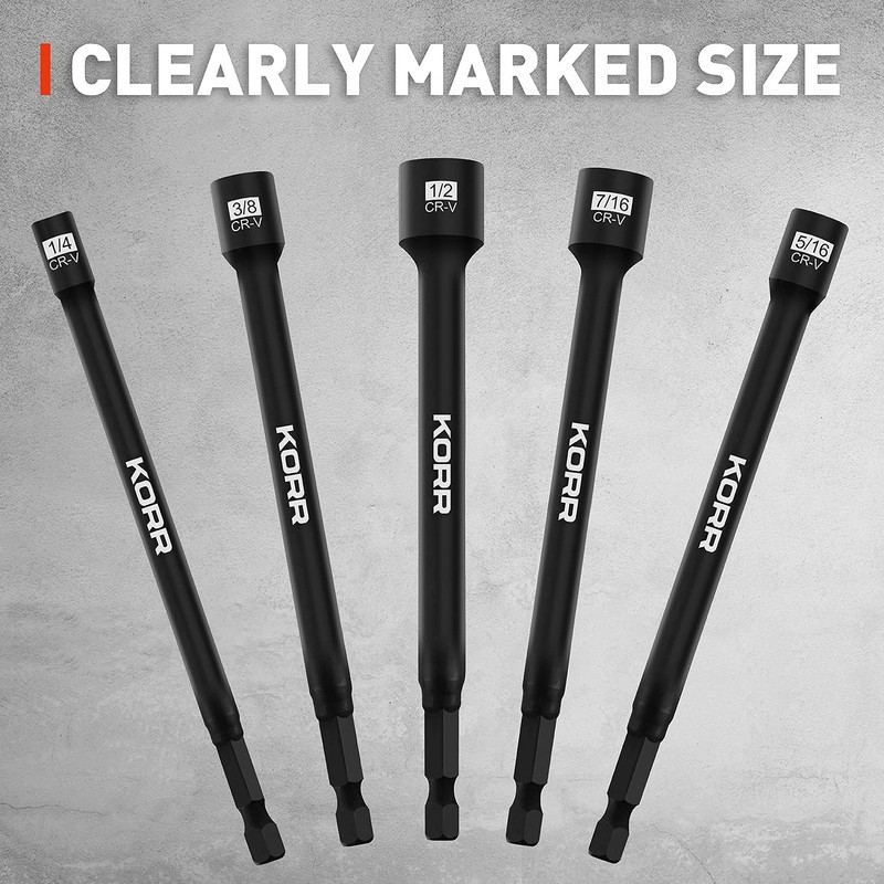 KORR Tools KIBPP026 5pc Impact Rated Magnetic 6 inch Nutsetter Set (1/2", 7/16", 3/8", 5/16", 1/4")