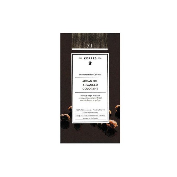 Korres Argan Oil Advanced Colorant 50ml Permanent Hair Colorant 7.1 Ash Blonde