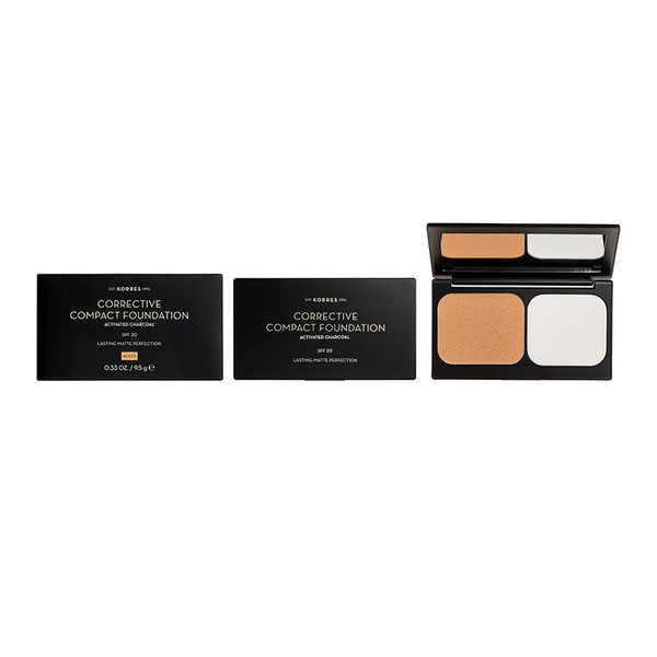 Korres Corrective Compact Foundation SPF20 Corrective Compact Make-up Imperfections & Matte Effect ACCF3 with Activated Carbon, 9.5g