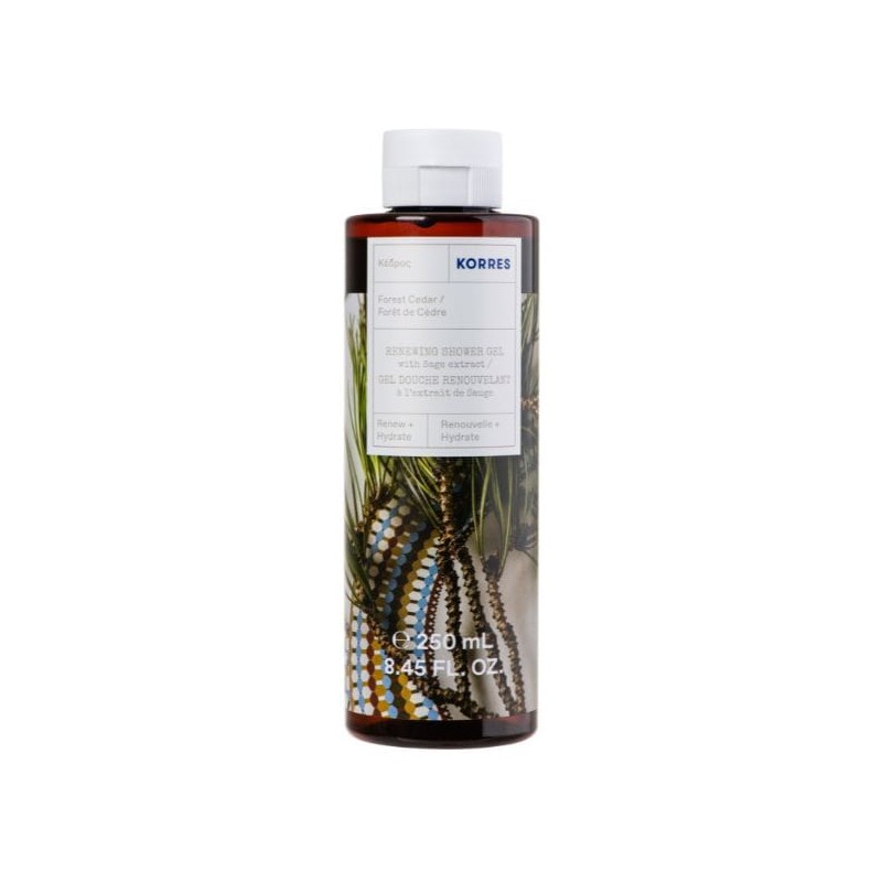Korres Forest Cedar Showergel is a gel to foam cleanser powered by Korres-owned toning sage extract, aloe extract and wheat proteins cleanses gently and helps maintain skin's natural moisture level for a comfort feeling each day.