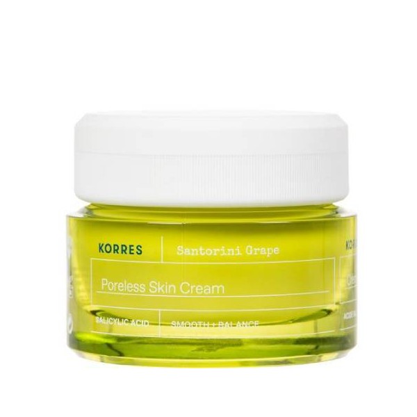 AQUA/WATER/EAU, GLYCERIN, SIMMONDSIA CHINENSIS (JOJOBA) SEED OIL, C12-15 ALKYL BENZOATE, DICAPRYLYL CARBONATE, AMMONIUM ACRYLOYLDIMETHYLTAURATE/VP COPOLYMER, DICAPRYLYL ETHER, MACADAMIA INTEGRIFOLIA (MACADAMIA) SEED OIL, POTASSIUM CETYL PHOSPHATE, VITIS VINIFERA (GRAPE) FRUIT EXTRACT*, ACRYLATES/C10-30 ALKYL ACRYLATE CROSSPOLYMER, ASCORBYL PALMITATE, CALENDULA OFFICINALIS EXTRACT, CAPRYLYL GLYCOL, CITRIC ACID, CYCLODEXTRIN, EPILOBIUM FLEISCHERI FLOWER/LEAF/STEM EXTRACT, GLYCERYL STEARATE, GLYCINE SOJA (SOYBEAN) OIL, HELIANTHUS ANNUUS (SUNFLOWER) SEED OIL, LACTIC ACID, OLEA EUROPAEA (OLIVE) FRUIT OIL, PANTHENOL, PERSEA GRATISSIMA (AVOCADO) OIL, PHYTOSTEROLS, PUNICA GRANATUM FRUIT EXTRACT, ROSMARINUS OFFICINALIS (ROSEMARY) LEAF EXTRACT, SODIUM GLUCEPTATE, SODIUM HYALURONATE, SODIUM HYDROXIDE, SORBITAN OLEATE, TOCOPHEROL, TOCOPHERYL ACETATE, TROXERUTIN, PHENOXYETHANOL, POTASSIUM SORBATE, SALICYLIC ACID, SODIUM BENZOATE, PARFUM/FRAGRANCE. *KORRES SANTORINI GRAPE FRUIT EXTRACT