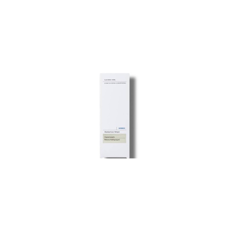 AQUA/WATER/EAU, KAOLIN, COCO-BETAINE, GLYCERIN, ILLITE, SODIUM COCOYL ISETHIONATE, MAGNESIUM ALUMINUM SILICATE, COCAMIDOPROPYL BETAINE, SODIUM METHYL COCOYL TAURATE, SODIUM CHLORIDE, GLYCOLIC ACID, CETEARYL ALCOHOL, DISODIUM LAURYL SULFOSUCCINATE, GLYCERYL CAPRYLATE, ZEA MAYS (CORN) STARCH, MARIS AQUA/SEA WATER/EAU DE ΜER, MENTHYL LACTATE, VITIS VINIFERA (GRAPE) FRUIT EXTRACT*, CAPRYLHYDROXAMIC ACID, CAPRYLYL GLYCOL, CHARCOAL POWDER, DIDECYLDIMONIUM CHLORIDE, GLYCERYL LAURATE, HYDROGENATED CASTOR OIL, LACTIC ACID, LONICERA CAPRIFOLIUM (HONEYSUCKLE) FLOWER EXTRACT, LONICERA JAPONICA (HONEYSUCKLE) FLOWER EXTRACT, MANNITOL, METHYLPROPANEDIOL, MICROCRYSTALLINE CELLULOSE, POLYQUATERNIUM-80, SALIX ALBA (WILLOW) BARK EXTRACT, SODIUM HYDROXIDE, TITANIUM DIOXIDE, TROXERUTIN, VOLCANIC SAND, POTASSIUM SORBATE, SALICYLIC ACID, SODIUM BENZOATE. *KORRES SANTORINI GRAPE FRUIT EXTRACT