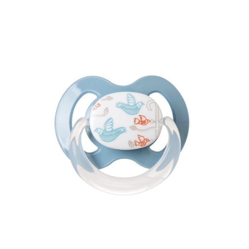 Before first use place the soother in boiling water for 5 minutes. Allow to cool and squeeze out any trapped water from the pacifier. This is to ensure hygiene. Clean before each use thoroughly with running warm water. For babies up to 3 months disinfect the pacifier regularly (boiling or similar). Make sure that there is always enough water in the pot to avoid material damage. Do not clean in dishwasher or disinfect in pressure cooker – detergents or heating in patches will cause material damage. Never dip teat in sweet substances or medication, your child may get tooth decay and/or material damage may occur. Replace the pacifier after 1 and 2 months of use for hygienic and safety reasons. Longer use of soother may cause tooth and/ or jaw damage. Cracks, traces of bites, stickiness or changes of shape may cause separation and swallowing of parts of the teat – choking hazard! In the event that the pacifier becomes lodged in the mouth of your child, DO NOT PANIC, it cannot be swallowed and is designed to cope with such an event. Remove from mouth with care as gently as possible. Do not leave the pacifier in direct sunlight or near a source of heat or leave in disinfectant (“sterilizing solution”) for longer than recommended, as this may weaken the teat
