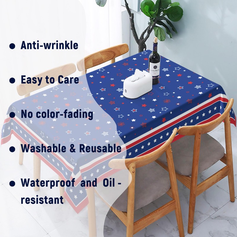- Size: This patriotic Rectangle tablecloth measures 60x84 inches and is wrinkle, fade, spill, and stain resistant for long life. Suitable for a table of 6-8 people.