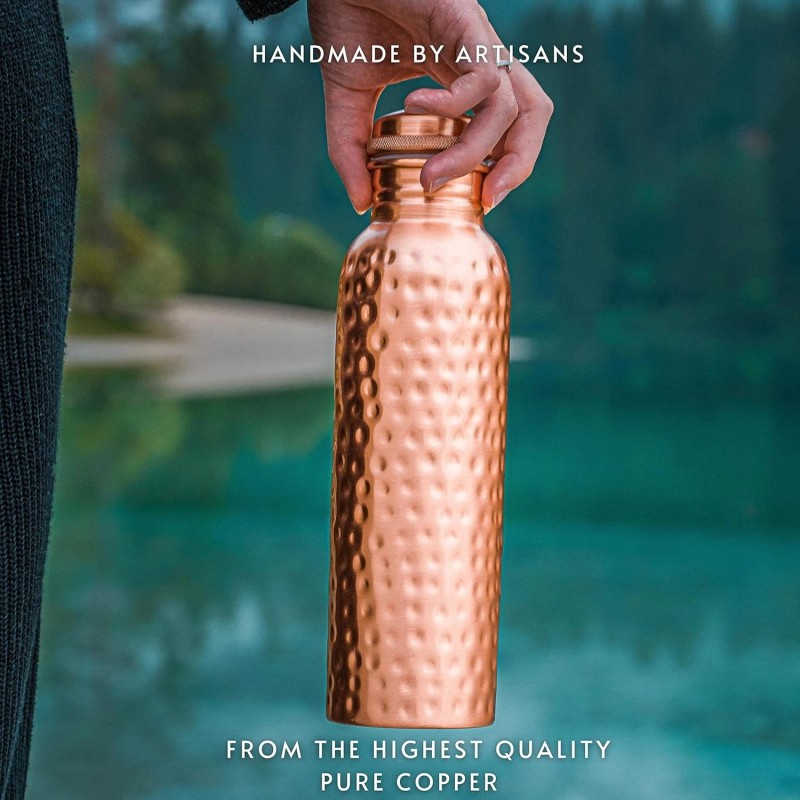 Kosdeg Copper Water Bottle - 34 Oz Extra Large - A Hammered Ayurvedic Pure