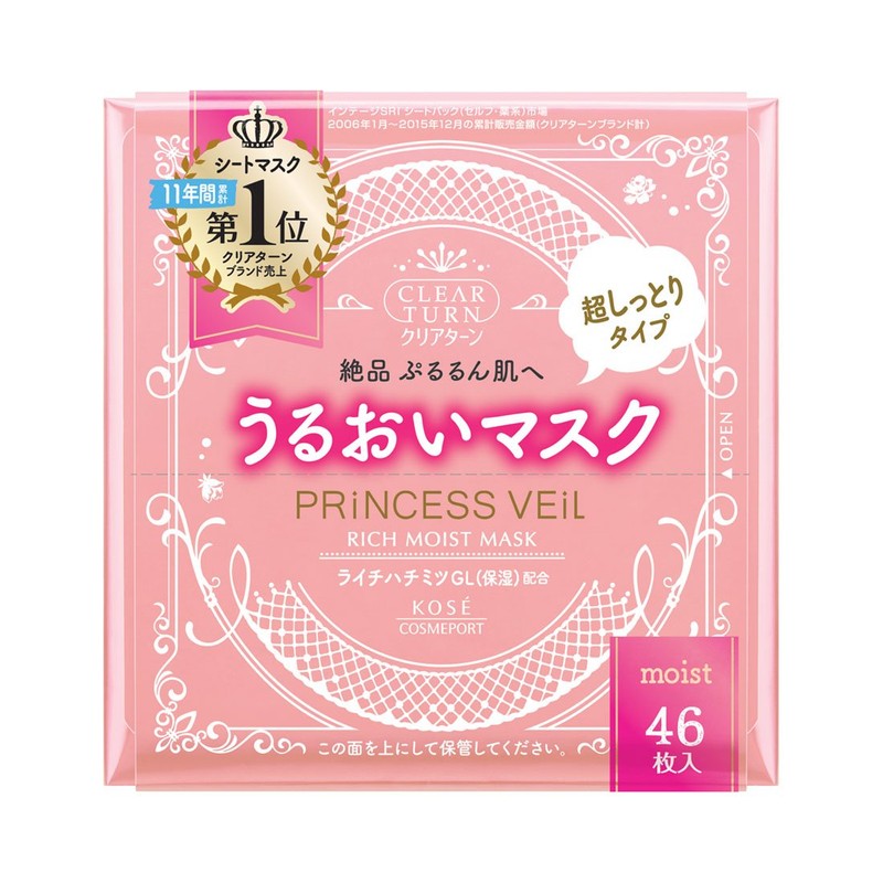 KOSE コーセー クリアターン プリンセスヴェール リッチ モイスト マスク フェイスマスク46シート (x 1) モイスチャライジング