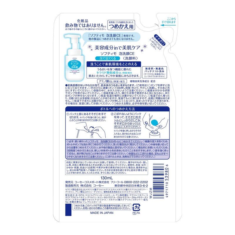 KOSE Softymo Foam Facial Wash (Ceramide) Refill 4.1 fl oz (130 ml)