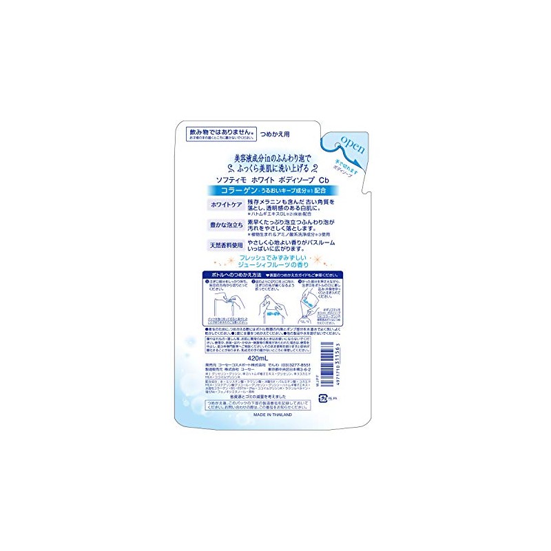 KOSE Softymo White Body Soap, Collagen, Refill, 14.8 fl oz (420 ml)
