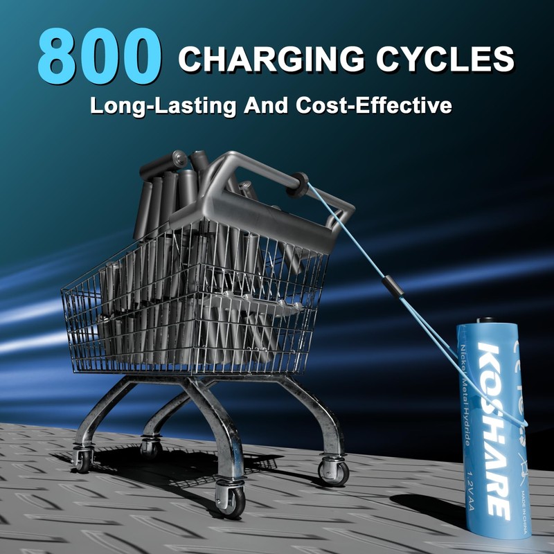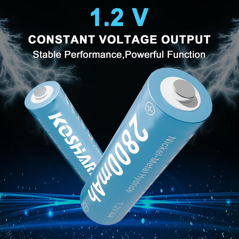 - 【Save Money】1.2V 2800mAh Ni-MH AA batteries can be charged continuously for 800 times, saving you the cost of buying disposable alkaline batteries.