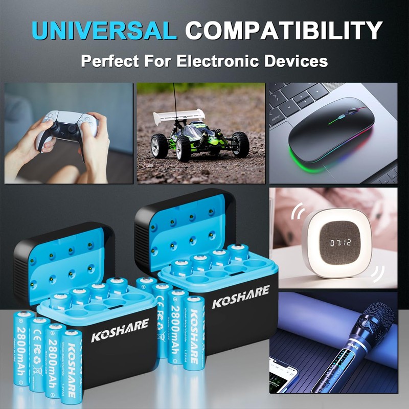 KOSHARE Rechargeable Ni-MH Batteries with Chargers,1.2V 2800mAh AA Ni-MH Batt...