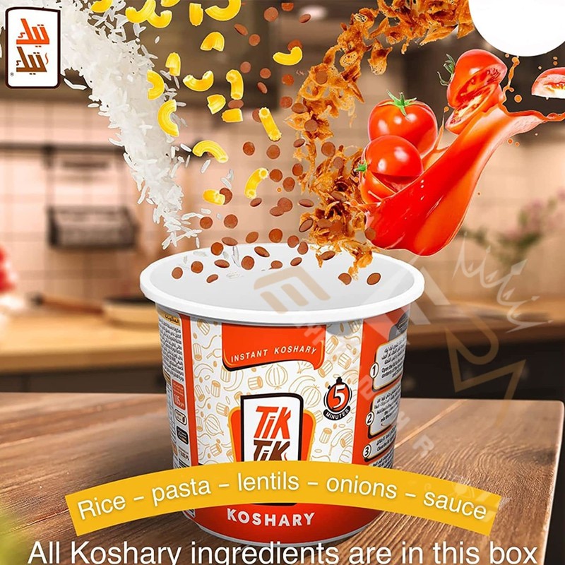 - - Manufacture And Expiration Dates Indicated On The Main Package In European Format , Which Is DD / MM / YY . - Tik Tik Instant Koshary - 105 gm Each Pack - It Can Be Prepared In 5 Minutes , Just Add Water - Free From Preservatives And Artificial Flavors And Rich In Protein