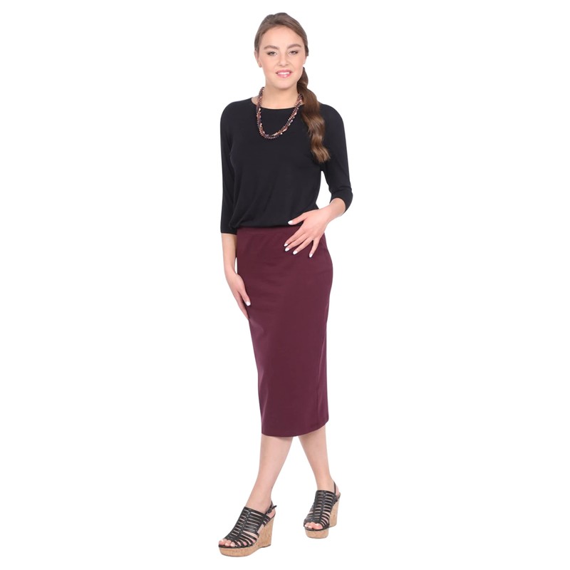 Kosher Casual Women's Modest Midi Lightweight Cotton Spandex Tapered Pencil Skirt Extra Large Black