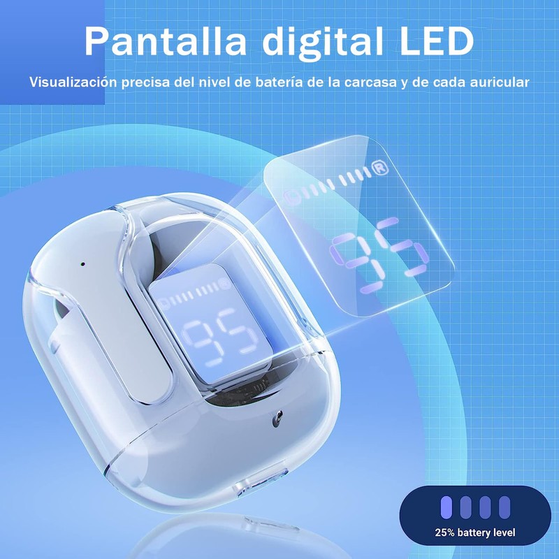 - Si está cansado de los cables que se enredan y restringen su movimiento, ¡este Audífono inalámbrico Bluetooth 5.3 es la solución perfecta! Gracias a su tecnología Bluetooth 5.3, estos Audífonos te permiten disfrutar de una calidad de sonido excepcional sin cables. Además, su diseño transparente y elegante los hace lucir impresionantes.