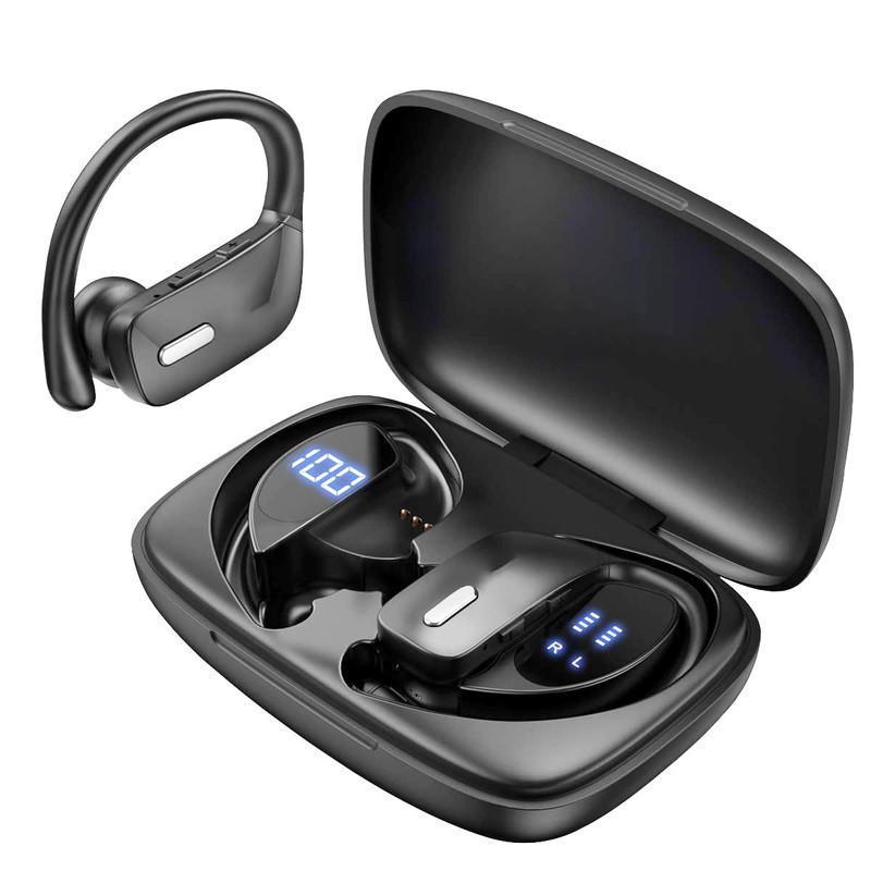 • Diseño de ingeniería para deportes. Los ganchos para las orejas de silicona de ajuste seguro y ajustable y el diseño ergonómico aseguran que los audífonos deportivos se mantengan cómodamente firmes en su lugar al practicar deportes, correr, otras actividades al aire libre, etc. Equipado con 3 pares de tapones para las orejas de repuesto de diferentes tamaños para opciones Incluso si hace ejercicio extenuante, los audífonos no se caerán. Y IPX5 a prueba de salpicaduras protege los audífonos deportivos inalámbricos de gotas de agua o daños por sudor.