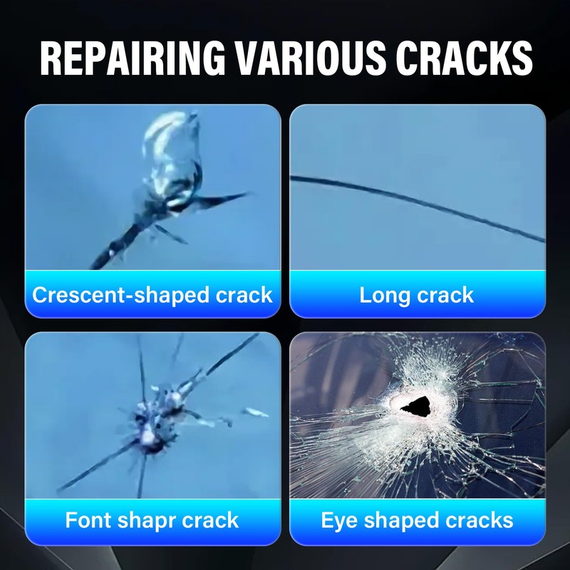 - 【Comprehensive Repair Capabilities】The windshield repair kit is suitable for various damages such as chips and cracks, including bull's eye cracks, star-shaped cracks, single cracks, radial cracks, reticular cracks, etc