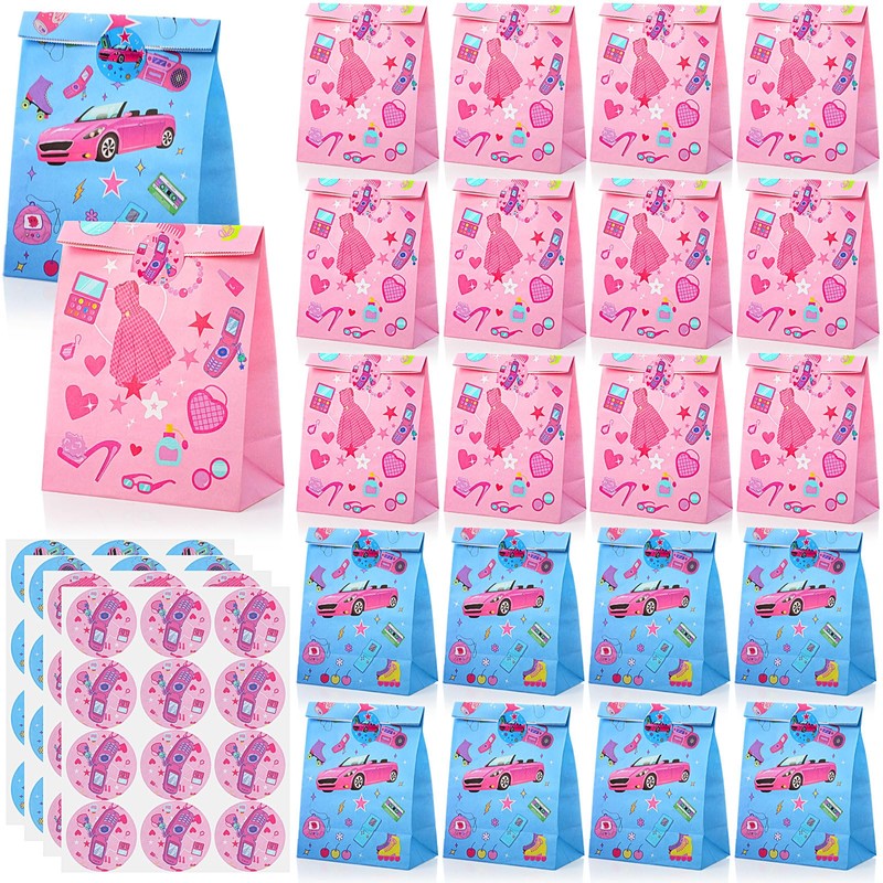 - Unforgettable Pink and blue Theme: as goodie bags for girls, these party favor bags feature charming designs with skirts, cars, makeup mirrors, and more; The bright pink colors will surely catch everyone's eye and become the party's visual