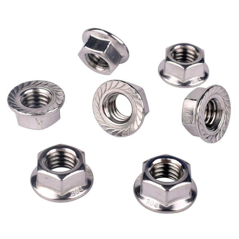 KOSJETHAS - Tuercas hexagonales de brida dentada de 1/4"-20, acero inoxidable 304 18-8, rosca gruesa UNC, rosca completa, paquete de 20