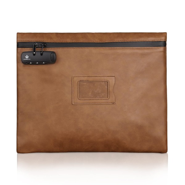 KOSMCCO Notary Bag with Lock, 13.6 x 10 Inches Heavy Duty Notary Supply Bag for All Notary Journal, Stamp, Embosser, Ink Pad and Valuables Storage Bag (Brown, L)