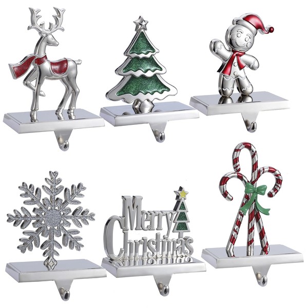- 1-Package Includes: 6 pieces Christmas stocking holders in our package, including 6 styles: Christmas tree stocking holder, Christmas Elves stocking hook, Xmas Deer stocking hanger, Snowflake stocking holder, Christmas Candy Stick stocking holder and Merry Christmas stocking hanger. Elegant and delicate in appearance, which are ideal for you to create festival atmosphere.