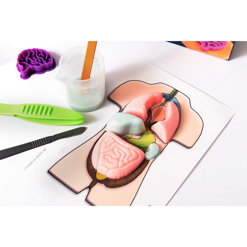 - Simply stir the slimy mass and pour into the finished organ moulds. This creates the heart, liver, lungs, kidneys, stomach and intestines in 3D. As an extra: intelligent clay and a brain as a cookie cutter