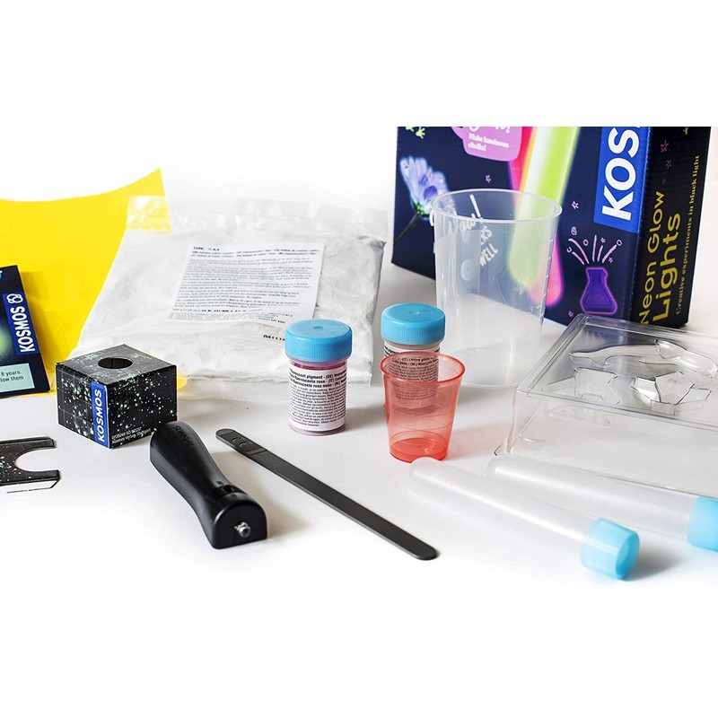KOSMOS 616830 Fun Science Glow Lights, Neon Lights, Creative Experiments in Black Light, Experiment Set for Children with Multilingual Instructions (DE, EN, FR, IT, ES, NL)