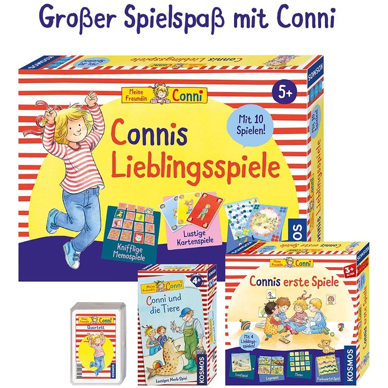 Kosmos 681043 Connis erste Spiele Spielesammlung mit Vier Memo-, Lauf- und Legespielen, Brettspiel für 2-4 Kinder ab 3 Jahre, Meine Freundin Conni