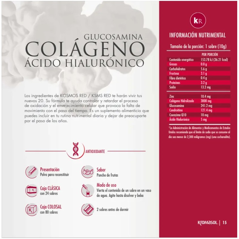 Kosmos Red By Kromasol 24 practisobres, sabor ponche de frutas, Antioxidante.