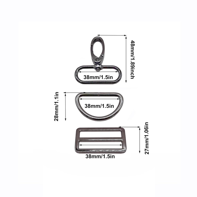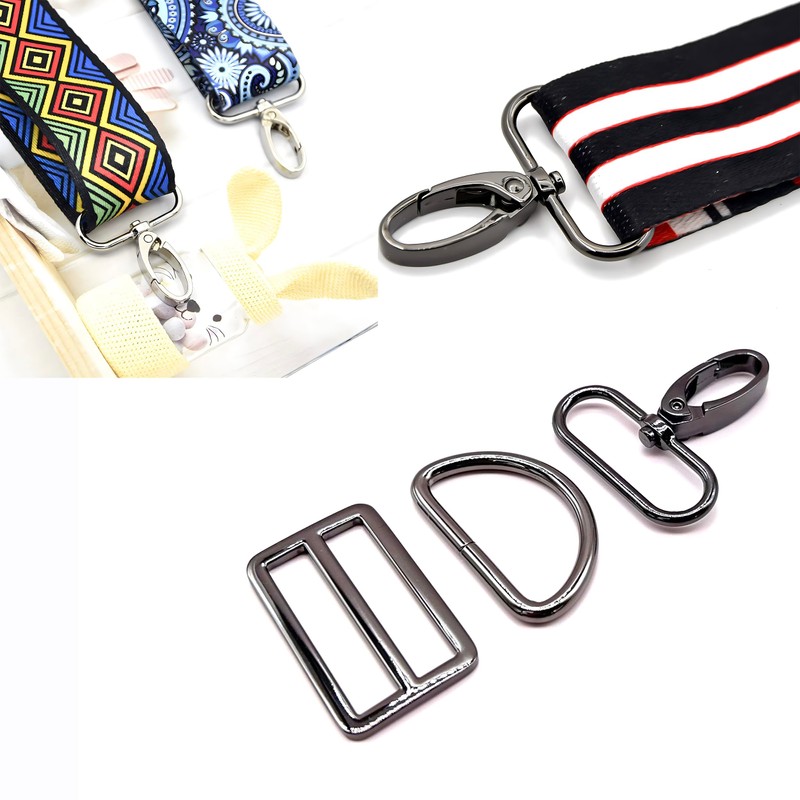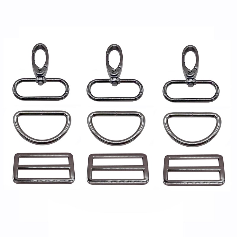 - Swivel Lobster Clasp Tri Glide D Rings Quality and Quantity: Come with 5 pieces 360 degree rotation Gunmetal 1 inch wide Swivel Clasps,5 pieces Tri-Glides Slide and 5 piece D ring.Strong and Durable,no ragged edges,nice chrome and without bubbled,nice finish without no blemishes. Total 5 sets bag starp hardware for bag making