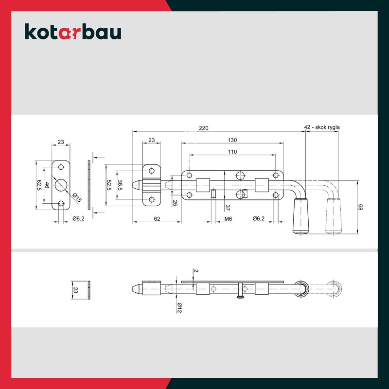 - Resistance - The KOTARBAU gate lock is made of steel, so the bolt latch has a long service life. The top quality of the product makes it resistant to mechanical damage and corrosion. The sturdy construction of the garden door latch secures it from forced opening.