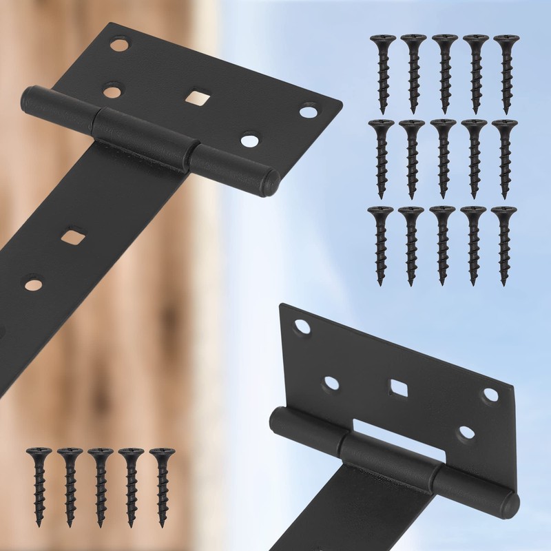 - Resistant: The T-hinges are made from high-quality metal. Our gate hinges are resistant to external factors. Our shutter hinges are galvanised in order to increase quality. The T-hinge is available in gold. The galvanised surface ensures our shutter hinges are rust-free. The hinge consists of two wings and a pin. Moves very easily.