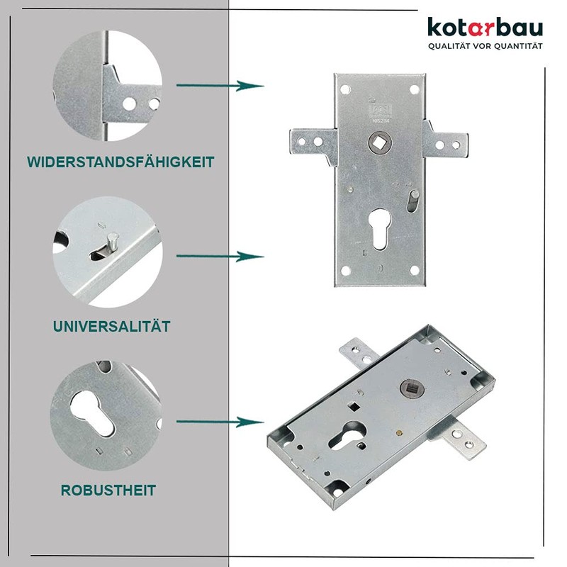 - Resistance - The garage door lock from KOTARBAU is characterised by its top quality. The choice of materials from which it is made ensures a long service life of the product. The garage lock is mainly intended for outdoor use, but it can also be used indoors. The best raw materials from which the garage door lock is made, protects it from mechanical damage and rust.