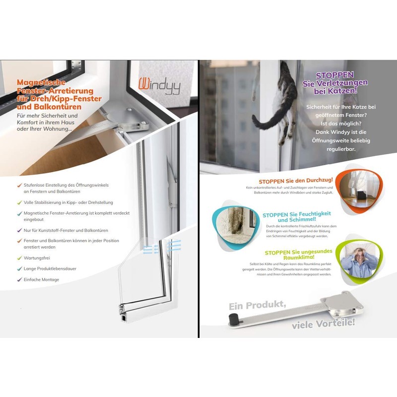 - Universal - KOTARBAU window lock is universal, easy to assemble, maintenance-free and completely covered. Thanks to the magnetic lock, windows and balcony doors can be continuously locked in the rotating or tilting position. You can adjust the opening to your needs and regulate the room climate even in bad weather. The window lock protects cats from injury and prevents draught.
