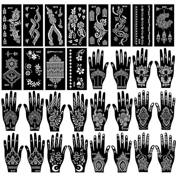 - HENNA HAND TATTOO STENCILS - 32 x size ( 20cm x 10cm/ 7.8" x 3.9") temporary henna tattoo stencil, includes different patterns. Totem flower style patterns. Variety of options to meet your every need.
