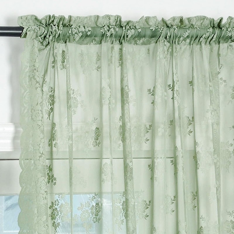 100% Brand New Vintage Sage Green Lace Curtains for Windows 72 Drop