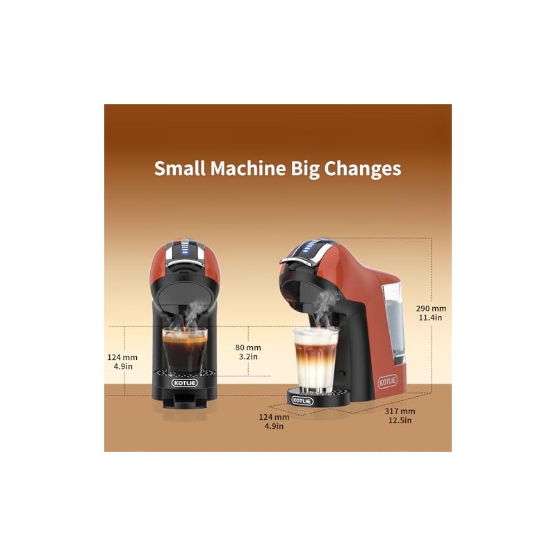 - 【5in1 Espresso Machine】The Kotlie Espresso Machine is with 19Bar pressure and 1400W fast-heating boiler, it’s easy to brew a rich cup of CREMA Espresso within 30 seconds. KOTLIE EM-308A Espresso coffee maker’pods( already in package) are for D*olce G*usto Capsules/Nes*presso Original Capsules/K-Cup Capsules/Ground Coffee and ESE(44mm) Coffee. With One coffee machine, you can enjoy different taste