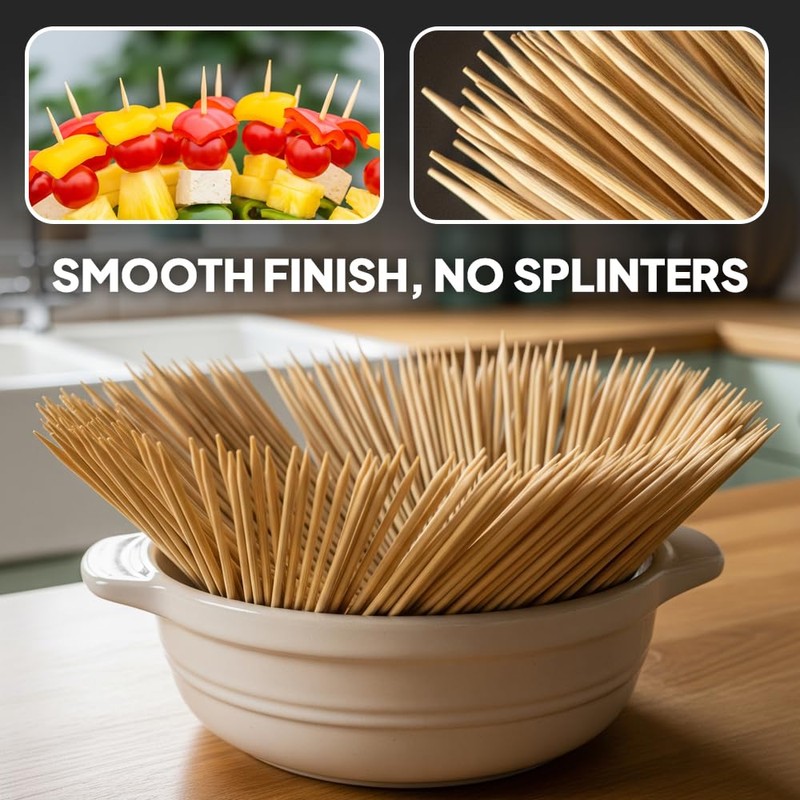 - Premium Quality Bamboo: Made from high-grade bamboo—sturdier, smoother, and more reliable than regular wooden skewers.