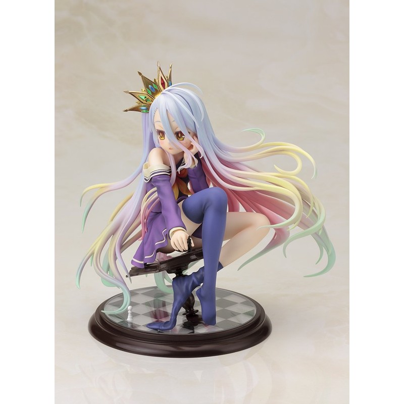 - Shiro perches on a chessboard with a couple of pawns scattered around the base, looking great in her purple dress and multi-colored hair