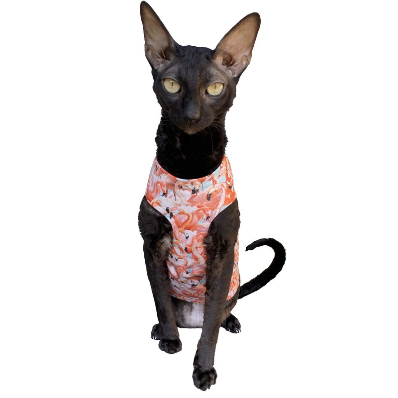 - Fashionable design makes your cat distinctive and adorable.Curved shape clothes to fit a cat's body