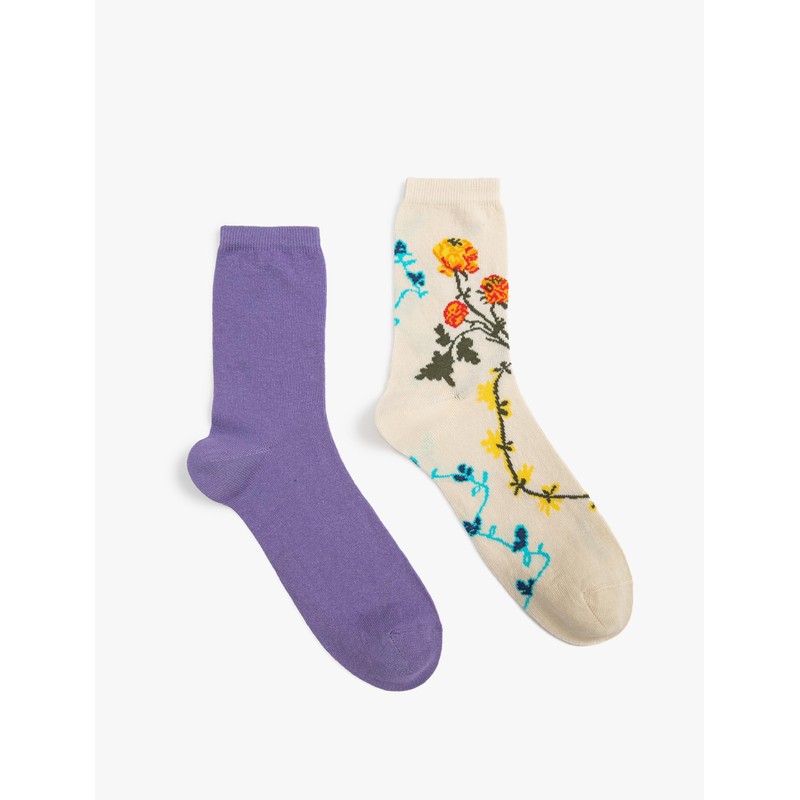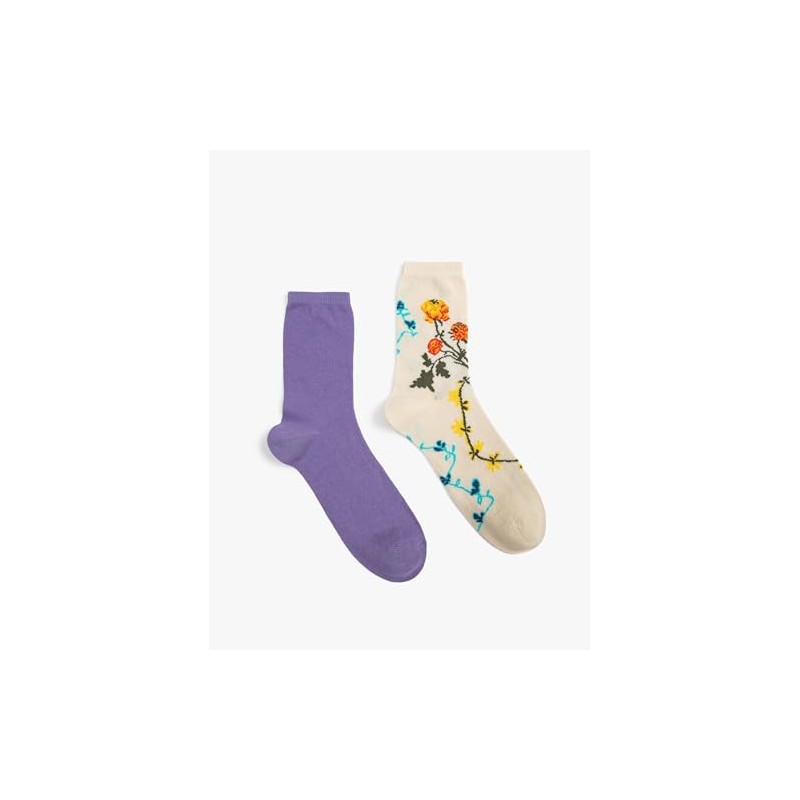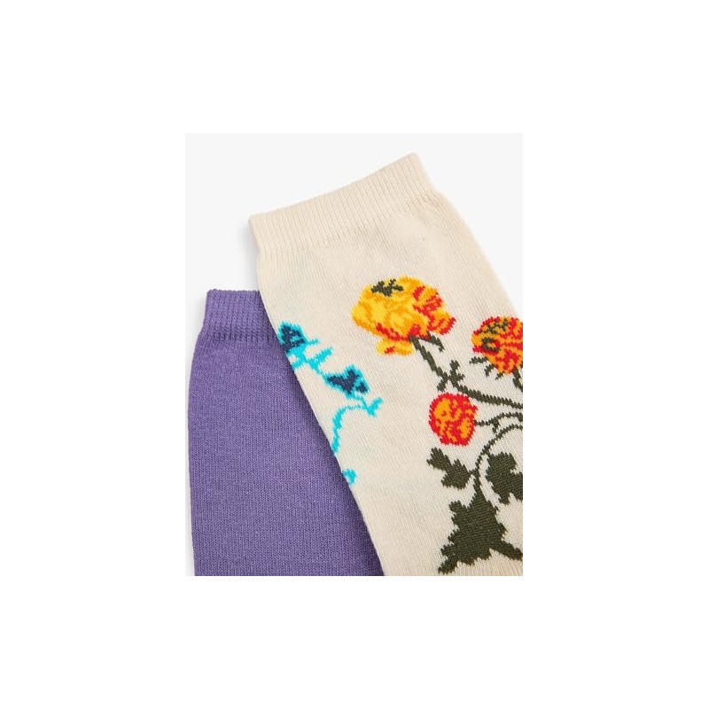 Koton Women's 2-Pack Floral Socket Socks Set, Beige(057), One Size