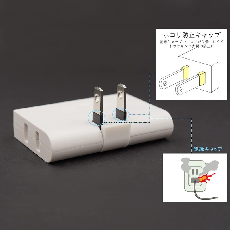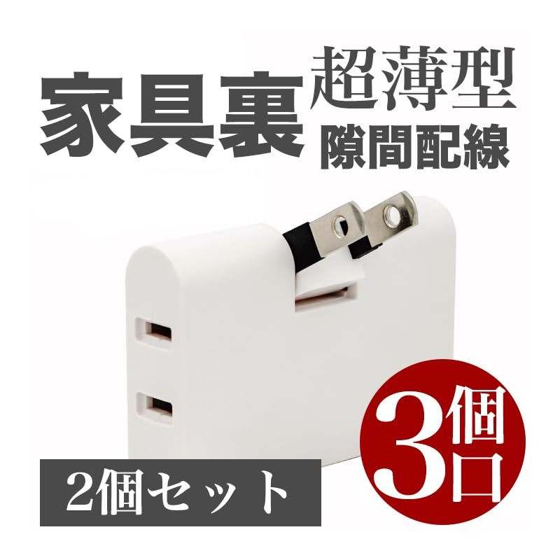 Triple tap that can distribute power from one outlet to three outlets. You can use 3 devices at the same time, and a set of 2 can accommodate up to 6 more devices. Solves the problem of lack outlets smoothly.