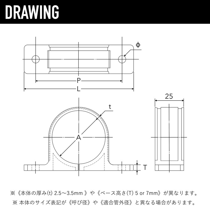 Please use the appropriate size according to the "outer diameter (diameter)" of the pipe. Depending on the manufacturer, we recommend checking the outer diameter of the actual size as there is a difference between the nominal diameter, such as 28 mm (actual size of 1.0 inches (27.5 mm) and 25 mm (actual size of 1.0 inches (25.4 mm)).